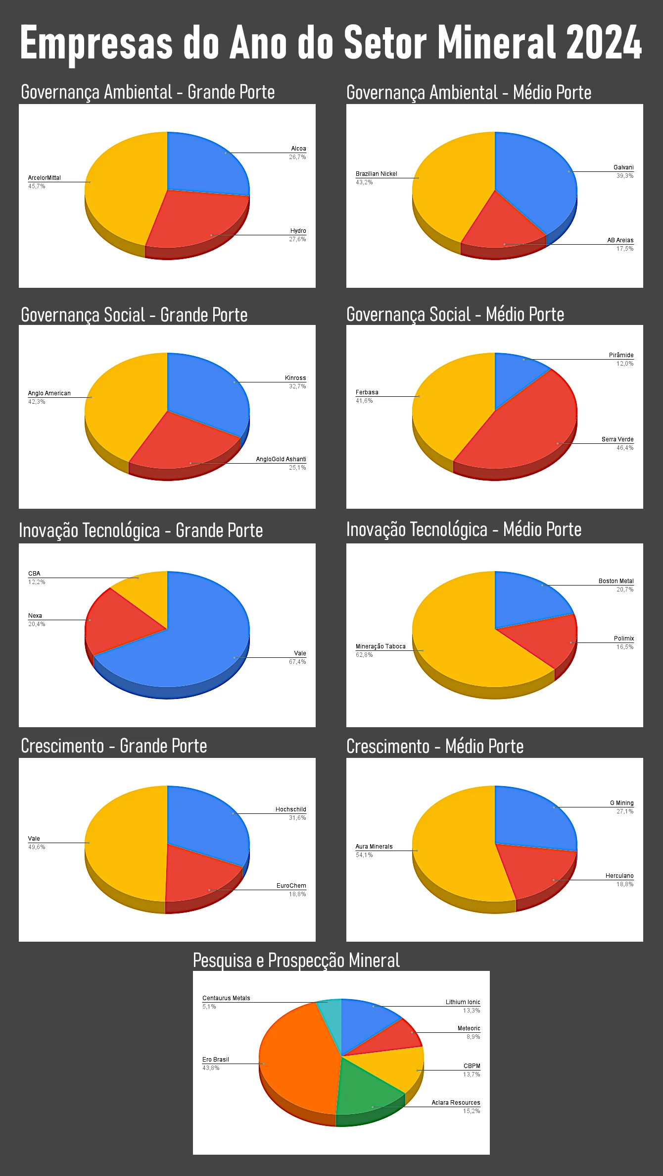 Com 58.086 votos — muitos deles do exterior, o que mostra o grau de internacionalização da mineração brasileira — foram eleitas as Empresas do Ano do Setor Mineral – 2024, uma iniciativa da publicação Brasil Mineral realizada há mais de 40 anos.